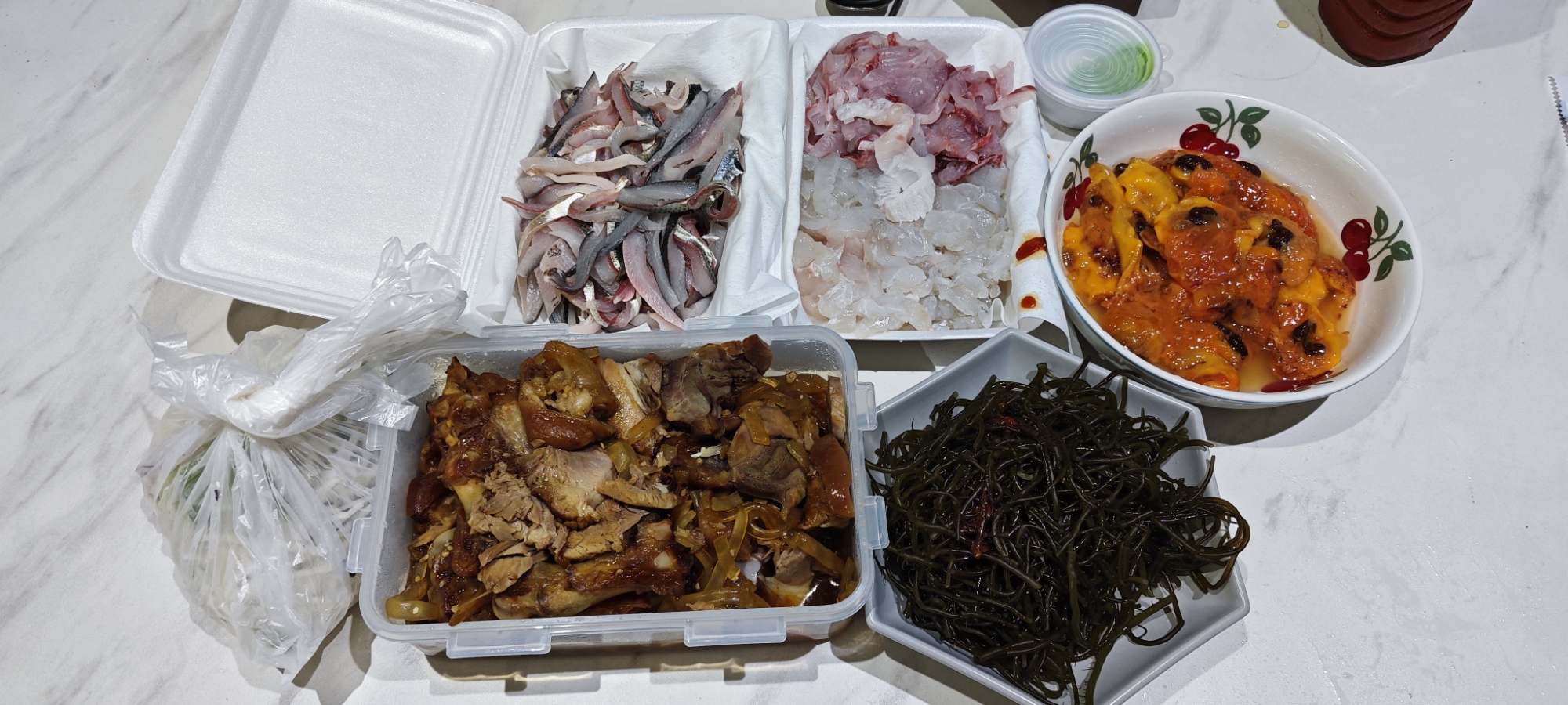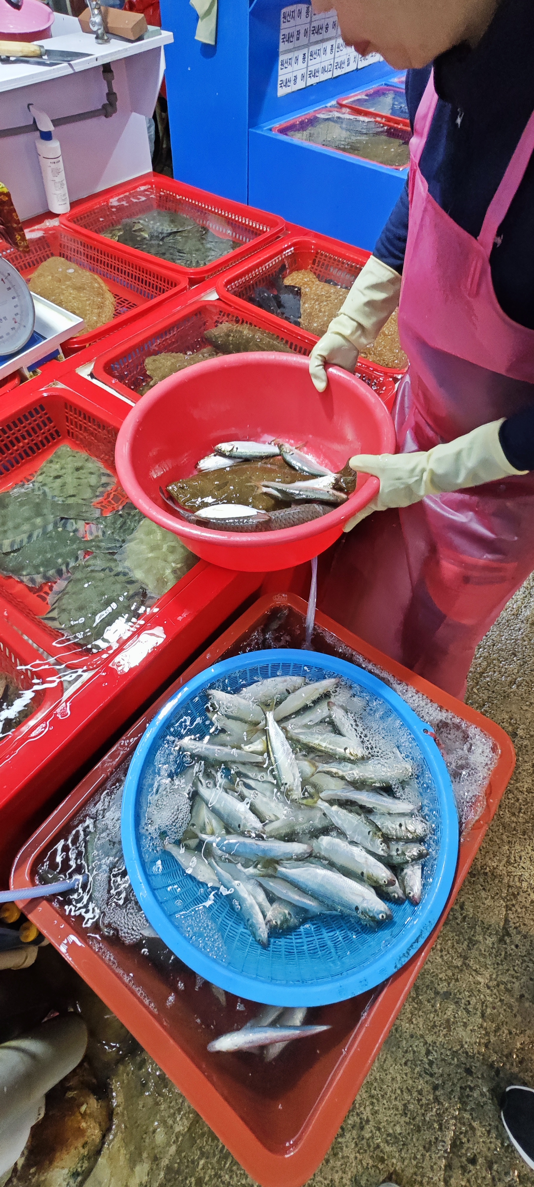 킬로 당 3만원씩이라는 군. 광어와 밀치, 전어를 6만원에 맞춰달라고 함.