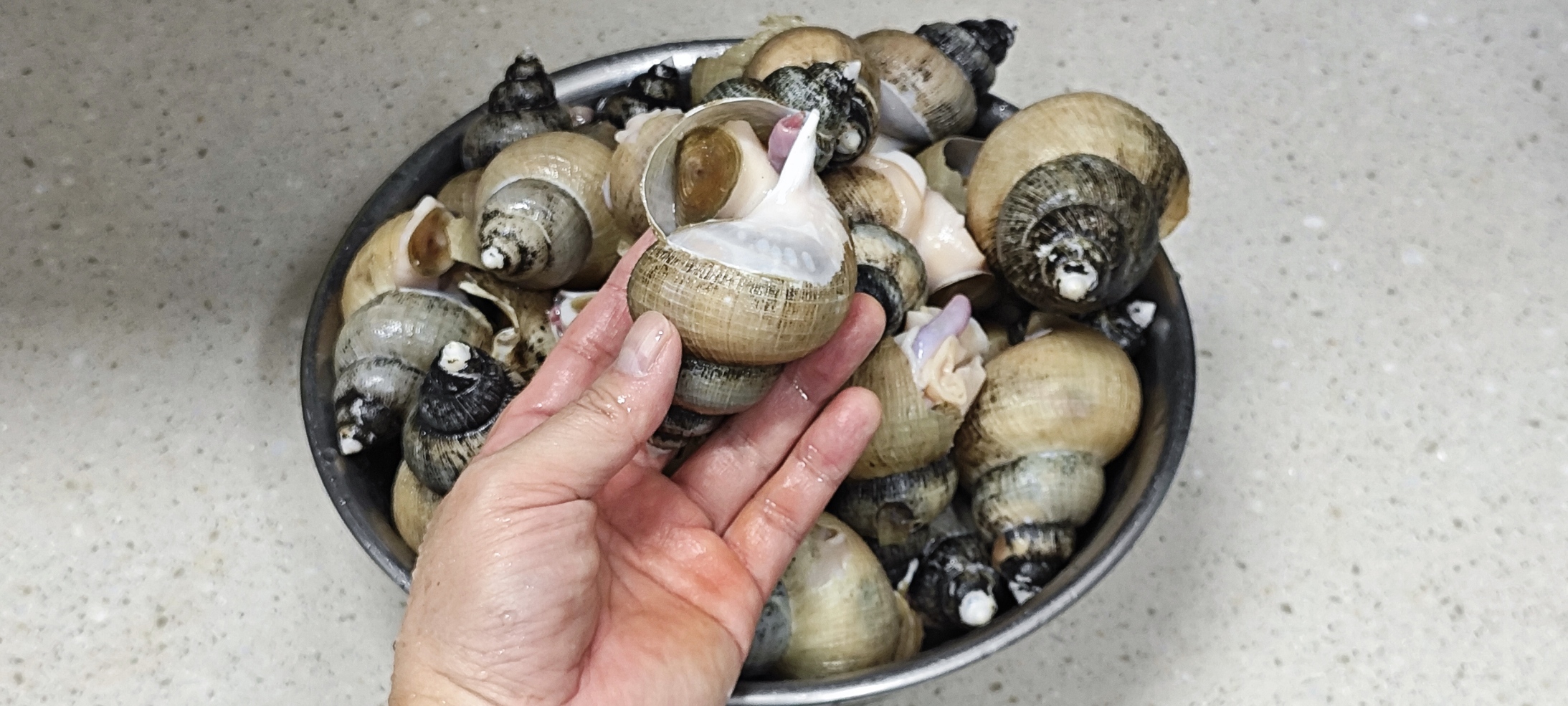 양이 많아서 백소라 두 번 삶았는데 첫 번째 소라들이 이만큼!!!!